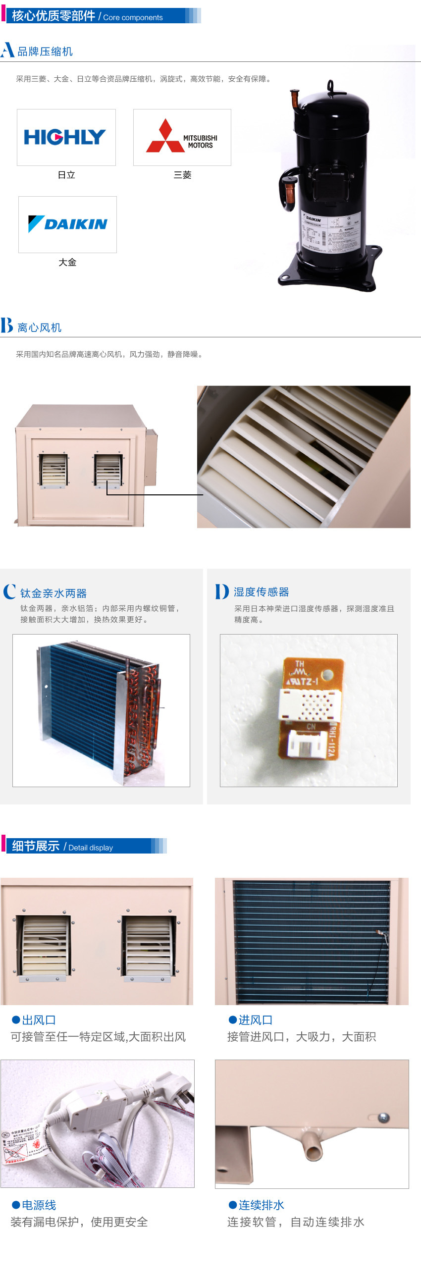 2.采用國際品牌壓縮機,性能穩定、除濕效果持久、強勁。
